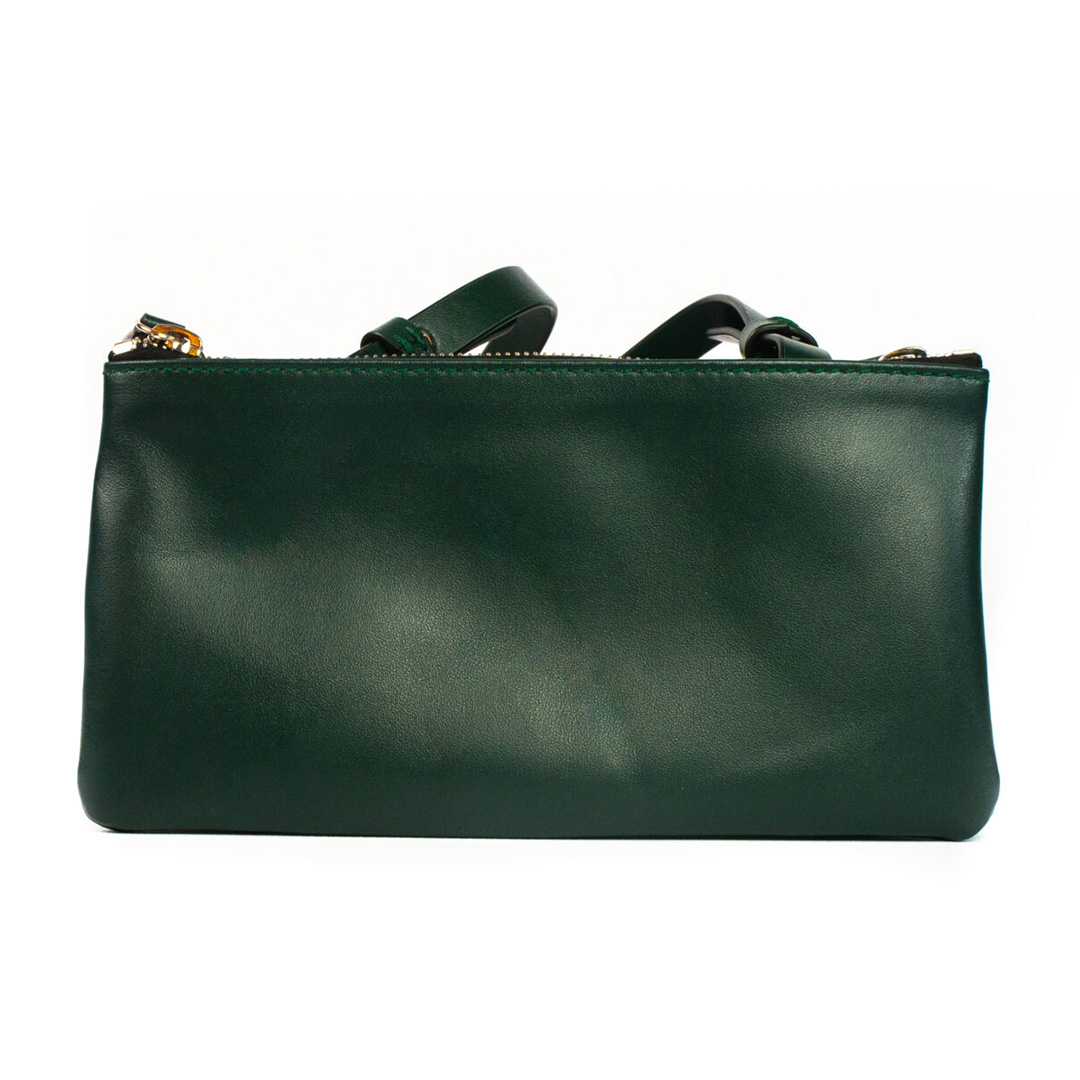 Realizzata in morbida pelle, può essere indossata a spalla/crossbody o a mano grazie alla tracolla amovibile e regolabile.